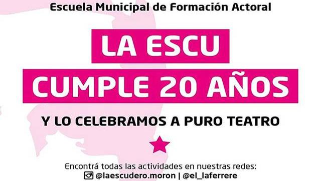 Entre las actividades también se destacan las del sábado 20. Desde las 16.30hs, Esther Goris brindará un Seminario de Actuación Frente a Cámara. Para participar se puede enviar un correo a laescudero.moron@gmail.com. A las 19hs, en el teatro municipal, Raúl Rizzo protagonizará la obra Rojos globos rojos. Por último, a las 21hs se presentará Estrella Cinegética, un espectáculo surgido del Laboratorio Municipal de Creación Teatral de la escuela.