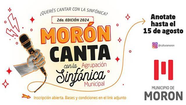 El Municipio de Morón presentó la segunda edición de “Morón Canta”, una iniciativa en la que vocalistas de todo el distrito participan para cantar junto a la Agrupación Sinfónica Municipal. Las inscripciones están abiertas hasta el 15 de agosto y está destinada a habitantes del distrito mayores de 16 años.
