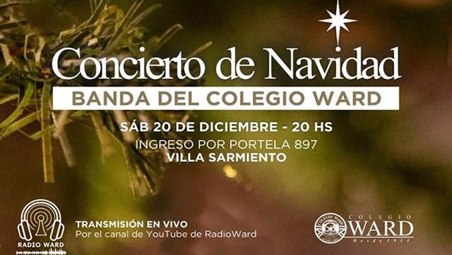El Concierto de Navidad del Colegio Ward se realizará el 20 de diciembre a las 20 hora. Entrada por calle Portela  897, Villa Sarmiento. Será transmitido en vivo por el canal de YouTube de Radio Ward. Entrada Libre y Gratuita, no se suspende por lluvia.