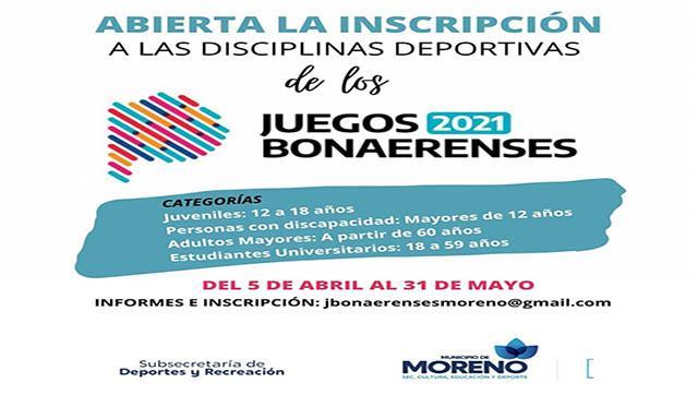 La Subsecretaria de Deportes y Recreación informa que continúa la inscripción, hasta el 31 de mayo, para participar de la 30º edición de los Juegos Bonaerenses 2021 que se realizarán de manera presencial o virtual dependiendo de cada disciplina y grupos etarios, dado el contexto sanitario.