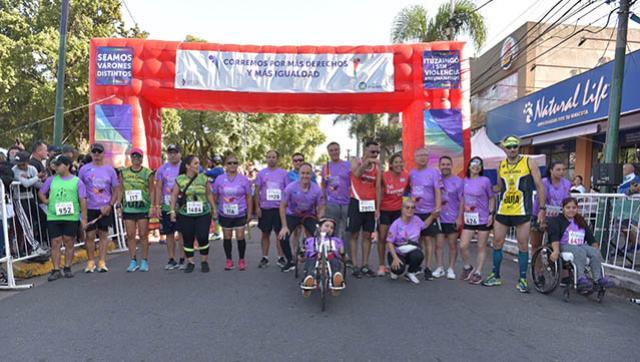 Más de 15 mil personas participaron de la 9na edición de la Maratón “Corremos por más derechos y más igualdad”, organizada por el Consejo de Mujeres, Géneros, Diversidad y Derechos Humanos; que contó con la participación del Intendente Alberto Descalzo, la ex Senadora Provincial, Marta Pérez, y Marita Godoy Fava, del Consejo de Mujeres, Géneros, Diversidad y Derechos Humanos.