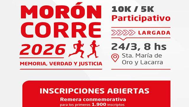 El próximo 24 de marzo, al cumplirse el 50° aniversario del último golpe cívico-militar, el Municipio de Morón organiza una nueva edición de la tradicional prueba atlética “Morón corre por la Memoria, la Verdad y la Justicia”, una jornada que combina deporte y memoria colectiva.