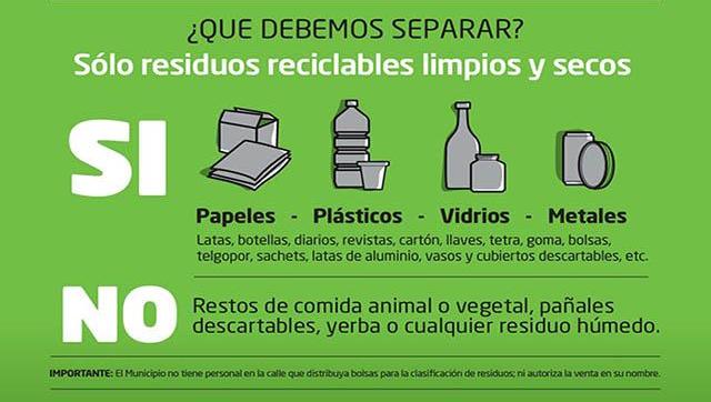 La iniciativa, basada en el concepto de “reducir, reutilizar, reciclar”, se acompañará con campañas de concientización para la comunidad, por parte de las y los promotores, que informarán a cada vecino y vecina sobre su implementación, los días y cómo hacerlo, a medida que se vayan extendiendo las zonas. Los materiales que recibirá la empresa de recolección Urbaser son: papel, cartón, plástico, vidrio, metales y tergopol.