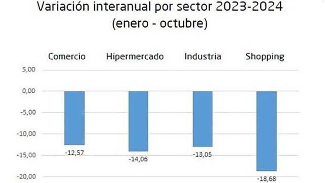 Durante el presente año, la caída más relevante del comercio se registró en mayo y fue del 24,8% en relación al mismo mes de 2023. Luego, las marcas empezaron a mejorar levemente pero se mantuvieron por debajo de los niveles de venta anteriores a la llegada al Gobierno del presidente Javier Milei. En el último mes evaluado, la caída fue del 5,6% en relación a lo vendido en octubre de 2023. Los rubros más afectados por el extraordinario descenso de la actividad comercial fueron los artículos de vestir (-23,8%), rotisería (-19%), artículos escolares (-17,9%) y almacén (-13,4%).