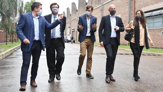 El intendente, Lucas Ghi, el ministro de Trabajo, Empleo y Seguridad Social de la Nación, Claudio Moroni, el secretario de la Pequeña y Mediana Empresa y de los Emprendedores del Ministerio de Desarrollo Productivo, Guillermo Merediz, el intendente de Ituzaingó, Alberto Descalzo, y el presidente de la Unión Industrial del Oeste, Edgardo Gámbaro, encabezaron de la presentación de programas para fomentar la contratación de personal en las industrias locales.