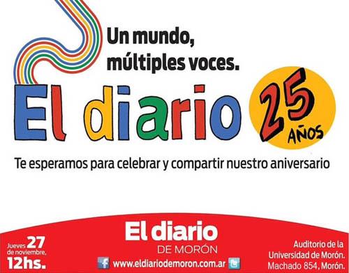 Queremos invitarte a ser parte de los festejos por los 25 años de El diario de Morón. Parece que fue ayer que nació aquel diario que hoy marca el pulso periodístico del oeste. ¡Te invitamos!