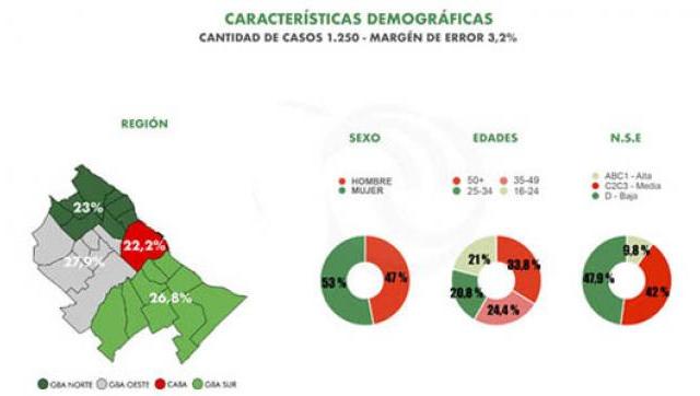 El universo de esta encuesta de opinión estuvo comprendido por mayores de 16 años residentes en el Área Metropolitana de Buenos Aires según parámetros de sexo, edad, nivel socioeconómico y región. El estudio indica tener un margen de error de un 3,2 por ciento y una confianza del 95,5 por ciento. El equipo a cargo de su realización estuvo compuesto por Manuel Zunino, Santiago Giorgetta, Sebastián Zunino, Francisco Martinelli y Patricia Giollo.