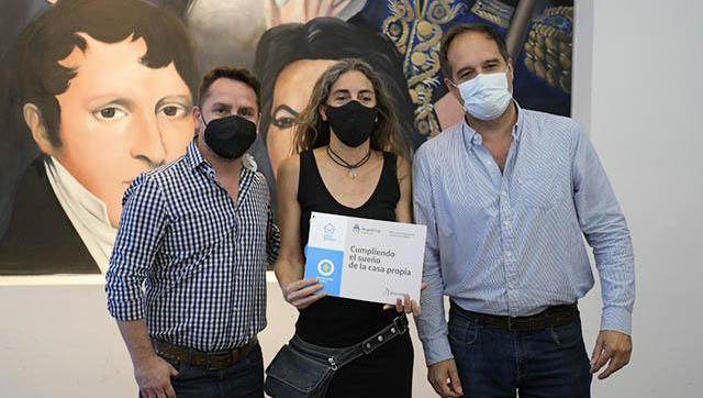 El intendente interino, Pablo Descalzo, junto al Secretario de Hábitat del Ministerio de Desarrollo Territorial y Hábitat de la Nación, Santiago Maggiotti, realizaron la entrega de créditos del programa Casa Propia pertenecientes a la línea construcción, y viviendas Procrear II.