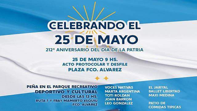 Desde las 13 horas habrá una peña en el Parque Recreativo, Deportivo y Cultural de Francisco Álvarez, ubicado en Ruta 7 y Fray Mamerto Esquiú. Donde se presentarán los y las artistas: Voces Nativas, Marta Argentina, Toti Roldán, Joan Barrón, Leo González, El Jariyal, Ballet Libertad y Maxi Medina.