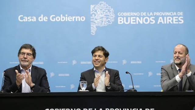 El gobernador de la provincia de Buenos Aires, Axel Kicillof, encabezó la presentación del Programa para la Promoción y Fortalecimiento de los Centros Socioeducativos y Comunitarios en Barrios Populares en el Salón Dorado de la Casa de Gobierno, junto al jefe de Gabinete, Martín Insaurralde y el director general de Cultura y Educación, Alberto Sileoni.