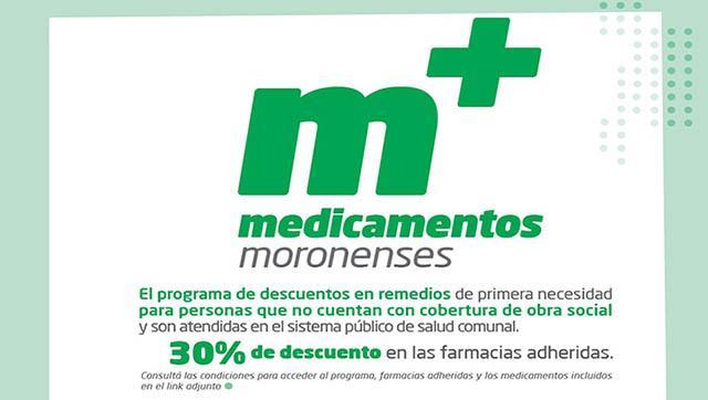 "Con hasta un 30% de descuento, sigue el programa 'Medicamentos Moronenses' en Morón"