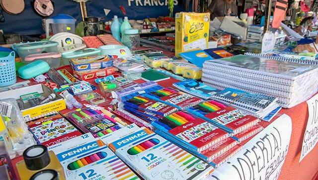 En esta feria los decuentros destacados son cuaderno tapa dura x 48 hojas a $3600; cuaderno tapa blanda x 24 hojas a $1500; cuaderno ABC desde $5500; repuesto de 96 hojas a $3500; lápices de colores largos x 12 a $1600: lapiz negro a $2000; gomas desde $100 y plasticola a $1800.