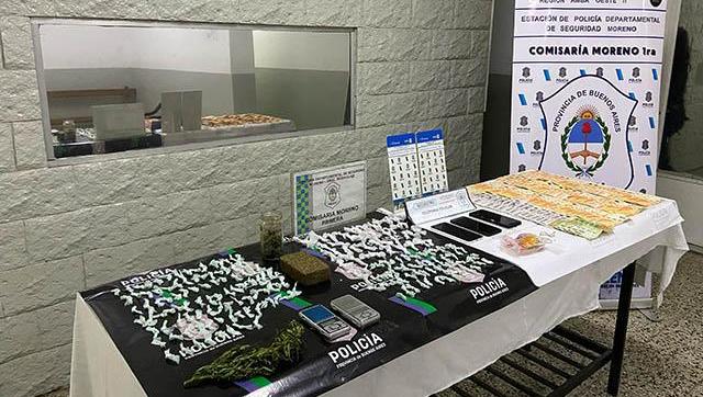 El procedimiento fue llevado a cabo por efectivos de la Comisaría Moreno 1ª con apoyo de otras unidades policiales del distrito. Durante el operativo se secuestraron 277 envoltorios de cocaína (con un peso total de 180 gramos), un trozo compacto de marihuana de 315 gramos, flores de cannabis, más de $100.000 en efectivo, dos balanzas de precisión y cuatro teléfonos celulares.